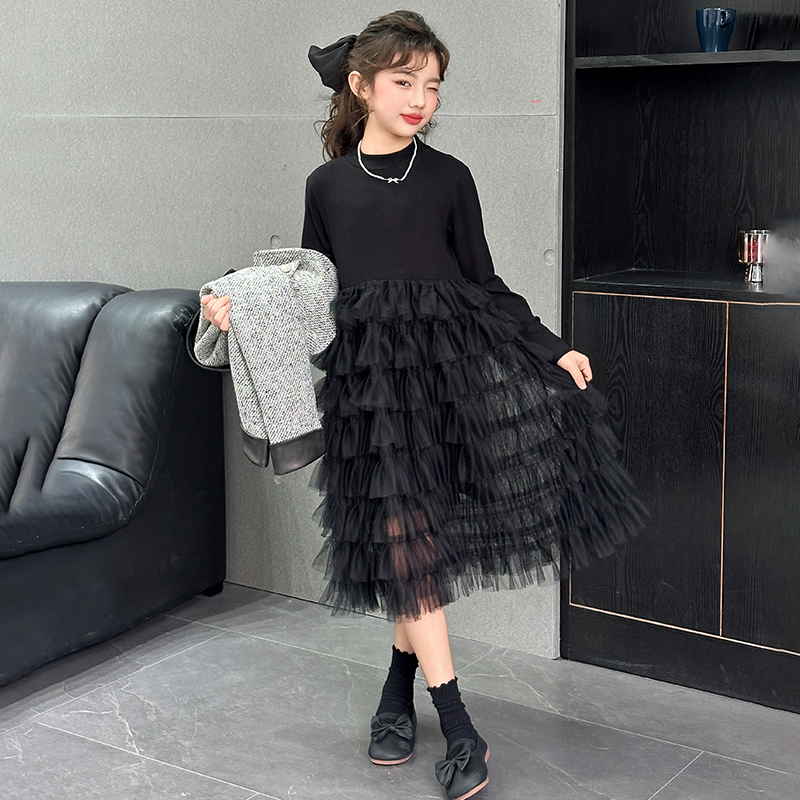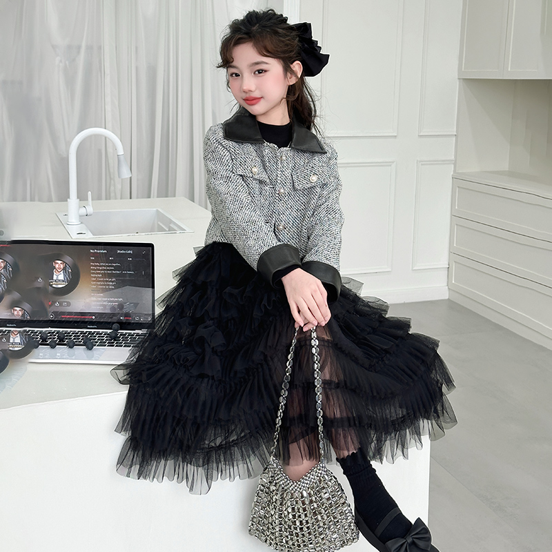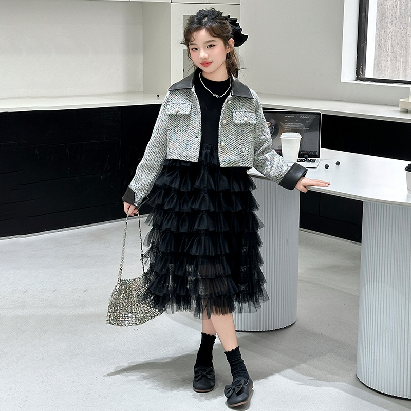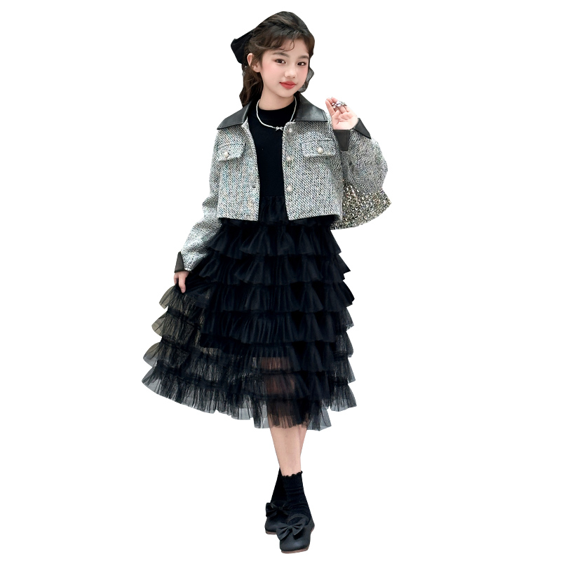 女童小香风连衣裙秋装2025新款洋气女中大童洋气外套蛋糕裙两件套