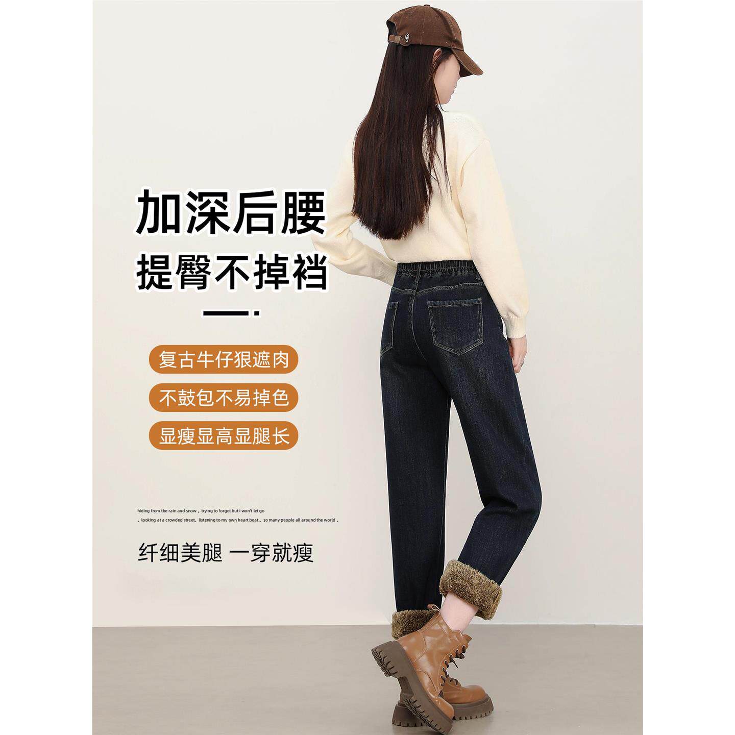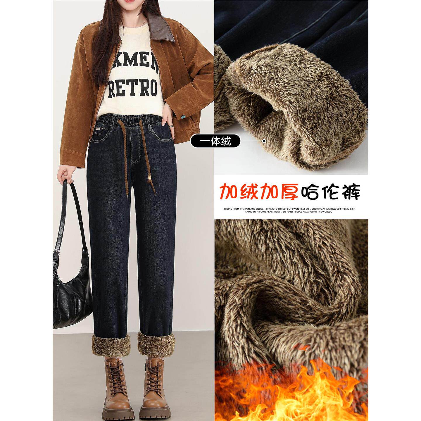 特厚羊羔绒牛仔裤加绒裤子女冬季加厚保暖一条过冬宽松老爹哈伦裤