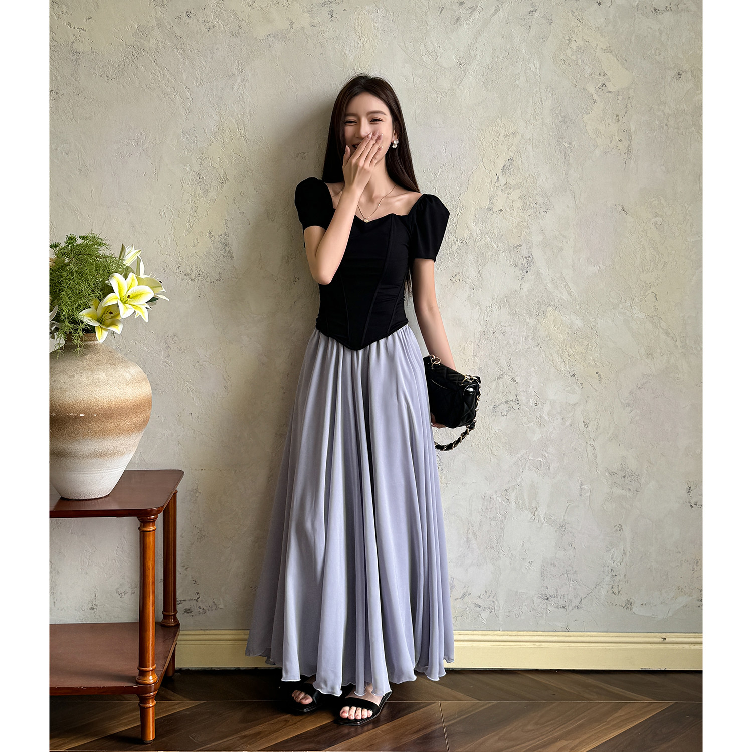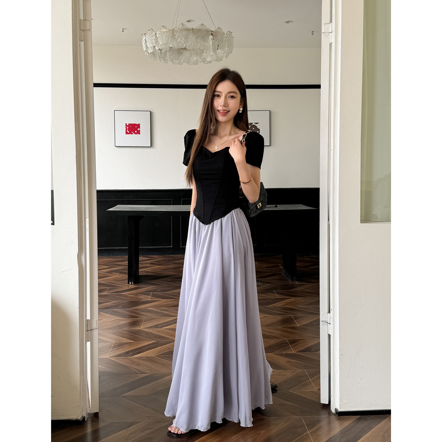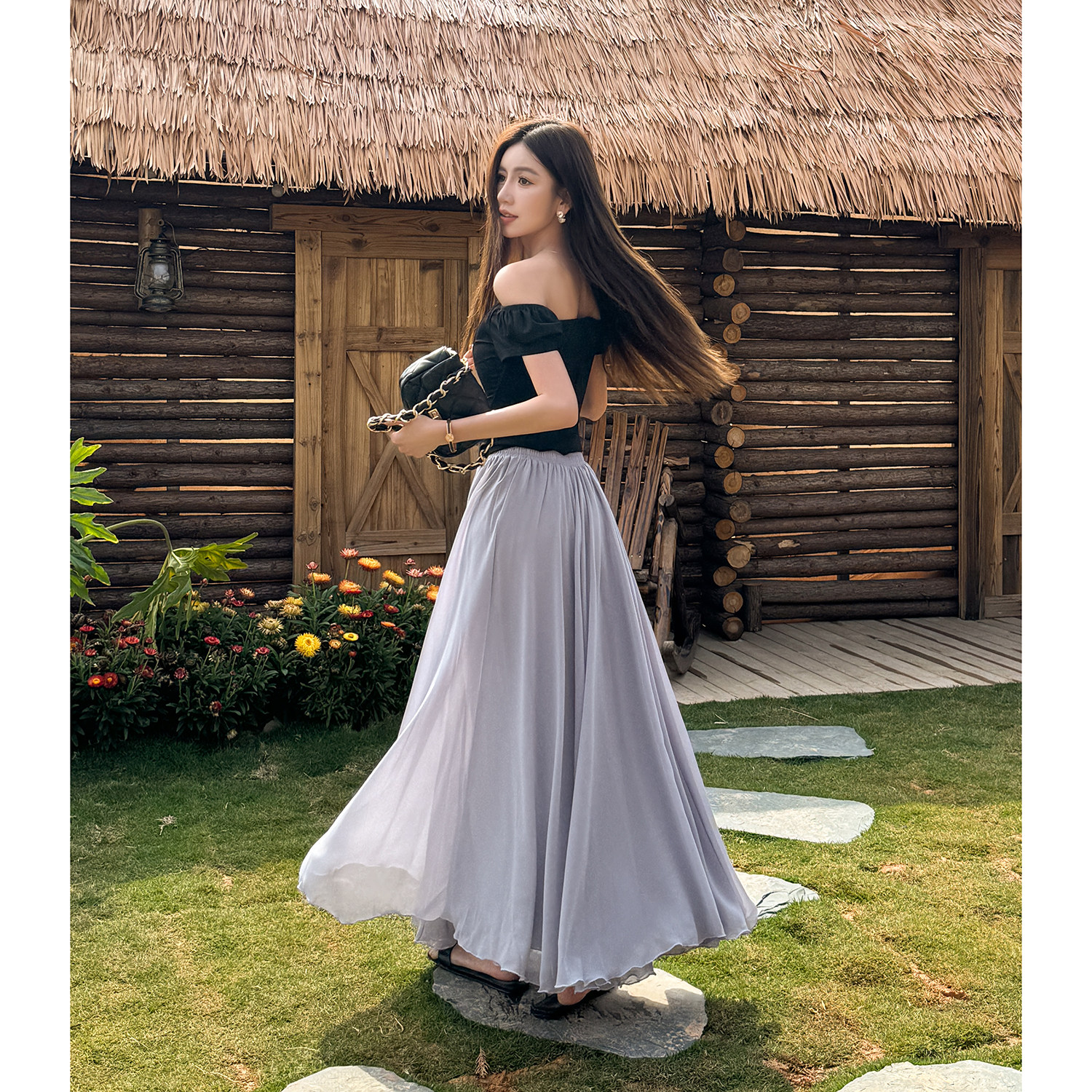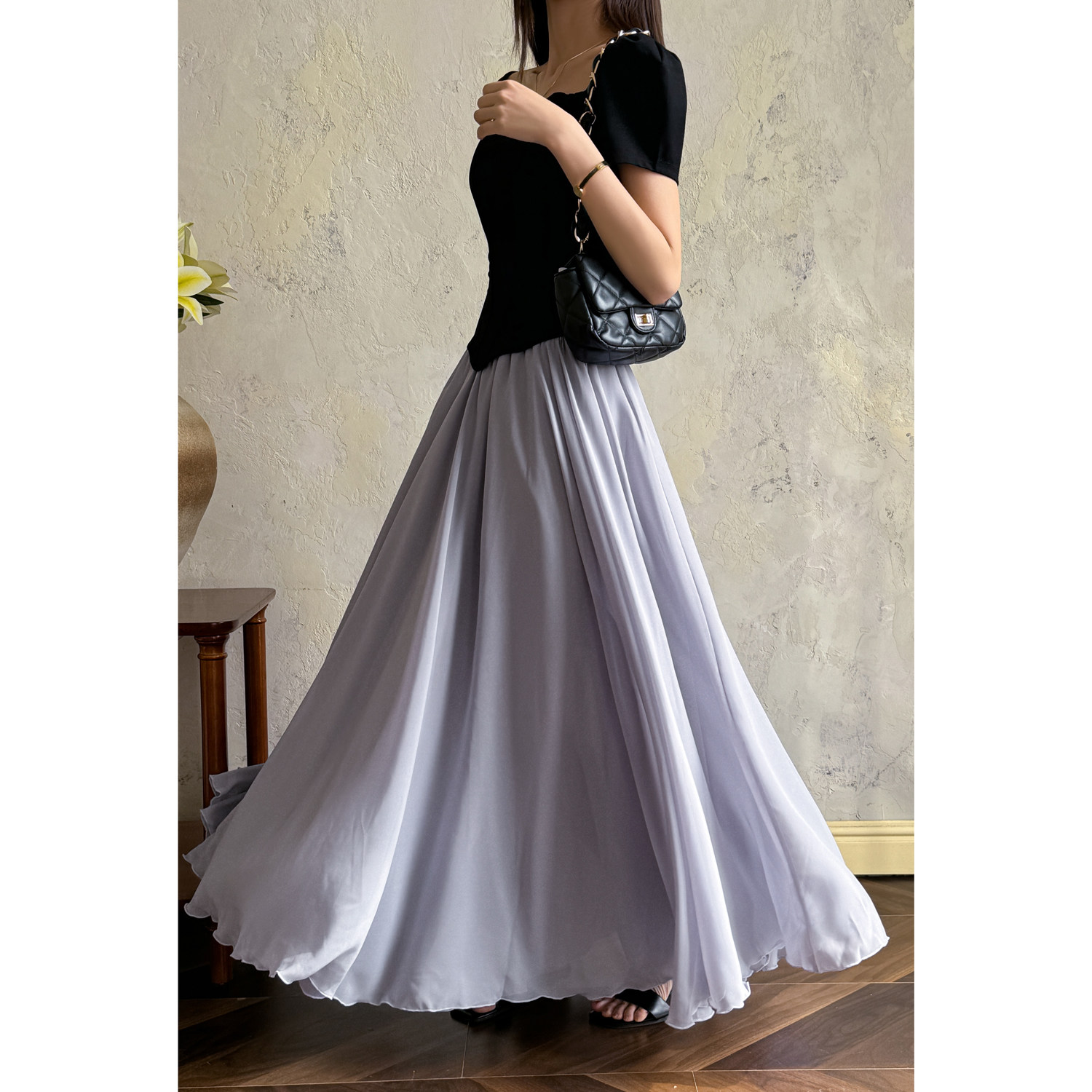 浅布调高个子拖地长裙8米大摆沙滩裙3层紫灰雪纺裙子松紧半身裙夏