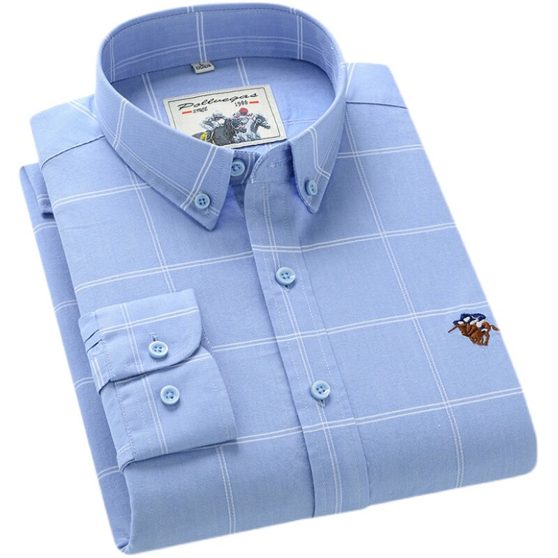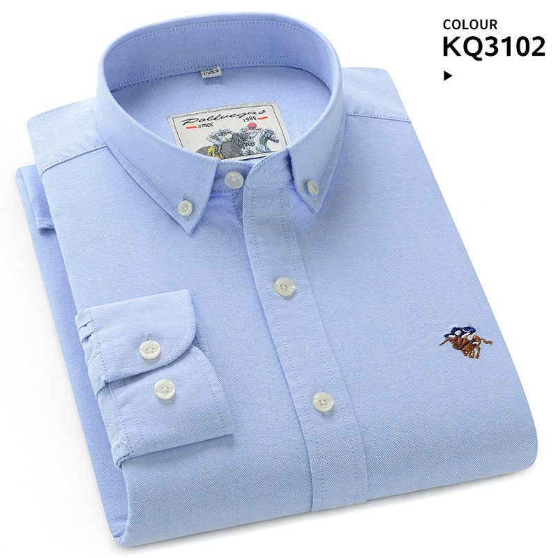 保罗100%纯棉男士牛津纺长袖衬衫