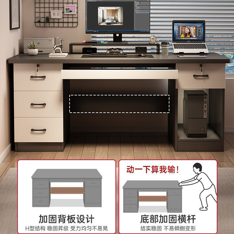 电脑桌台式机带抽屉书桌家用写字台简约现代办公桌椅卧室轻奢桌子