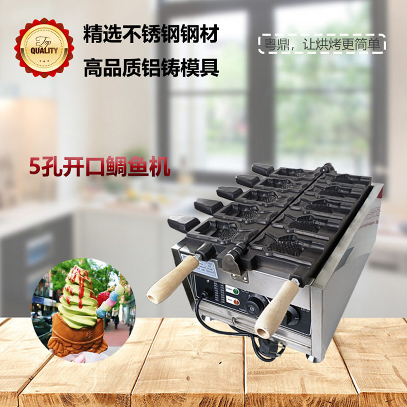 商用电热5孔开口鲷鱼烧机网红不锈钢冰淇淋鱼饼机器摆摊小吃设备
