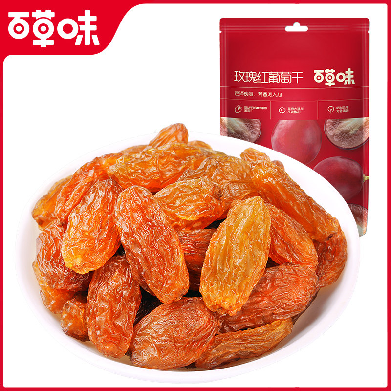 满减【百草味-玫瑰红葡萄干58gx5袋】新疆特产蜜饯水果干提子无籽