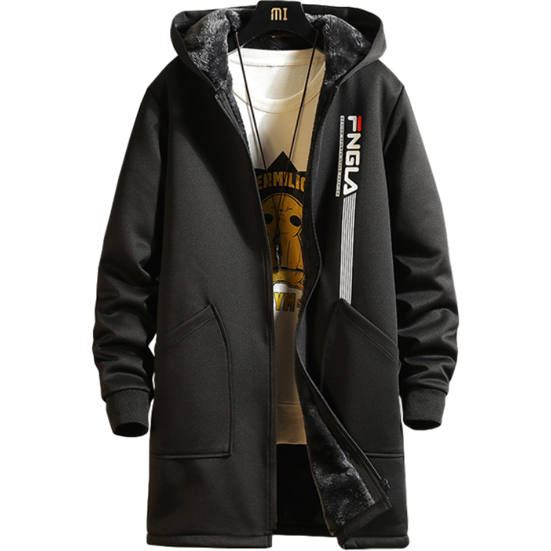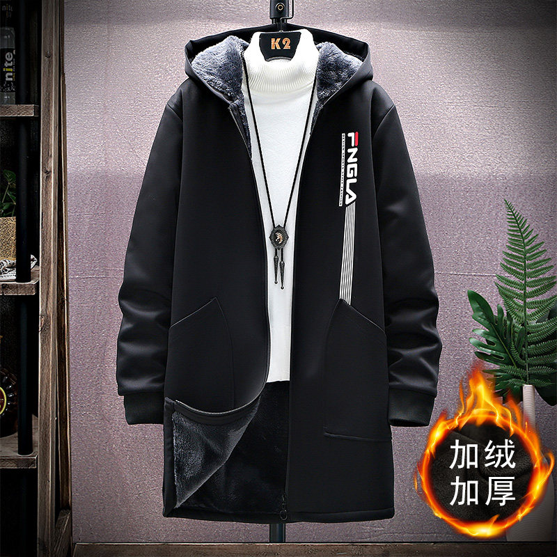 胖子毛内胆风衣男中长款大码休闲韩版潮牌大衣秋冬季连帽加绒外套