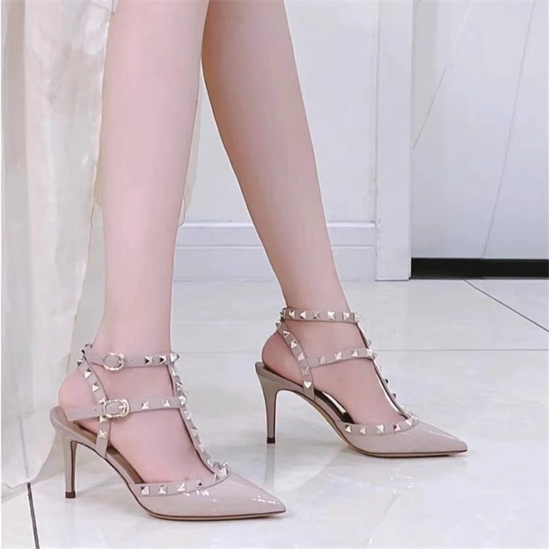 细跟铆钉尖头气质高跟鞋2025新款