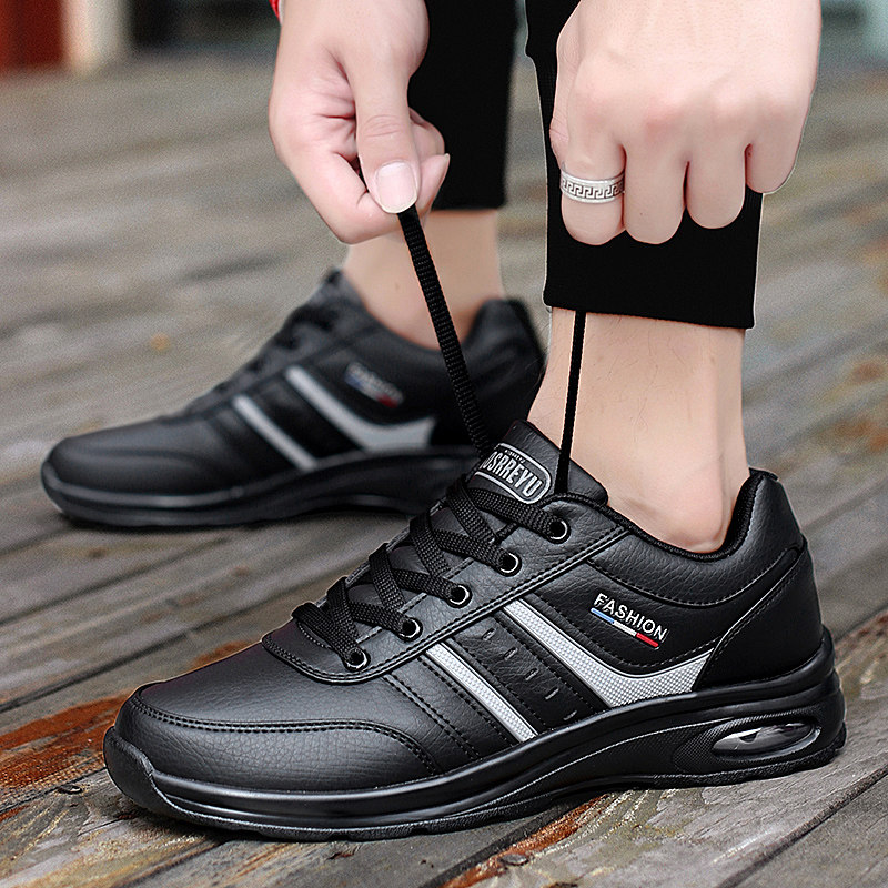 秋冬季牛筋底男士运动鞋黑色软底防滑男鞋爸爸鞋中老年休闲旅游鞋