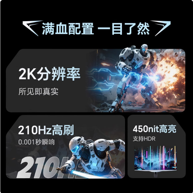 KTC27英寸2K疾速210Hz内置音响可升降显示屏电脑电竞显示器H27T6