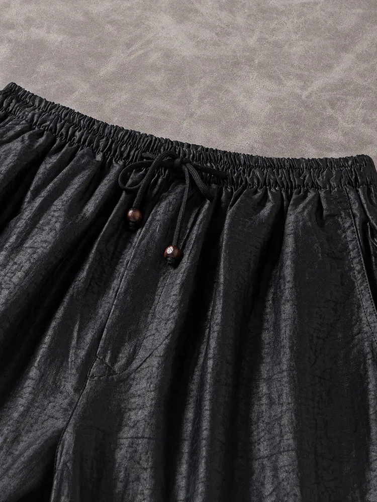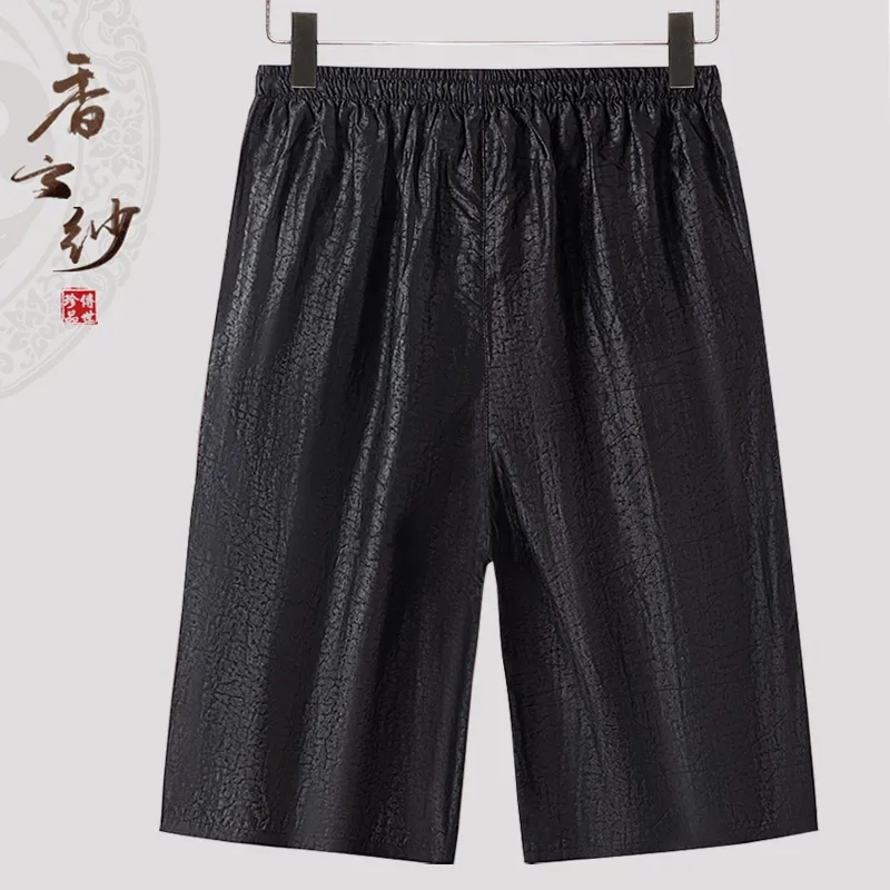 仿香云纱仿龟裂纹男裤子仿桑蚕丝五分裤薄款松紧腰休闲短裤男装夏