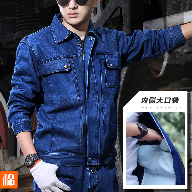 秋冬牛仔工作服套装男纯棉加厚耐磨防烫劳保服机修焊工服工地定制