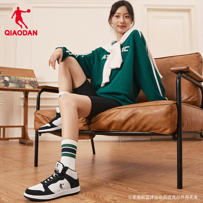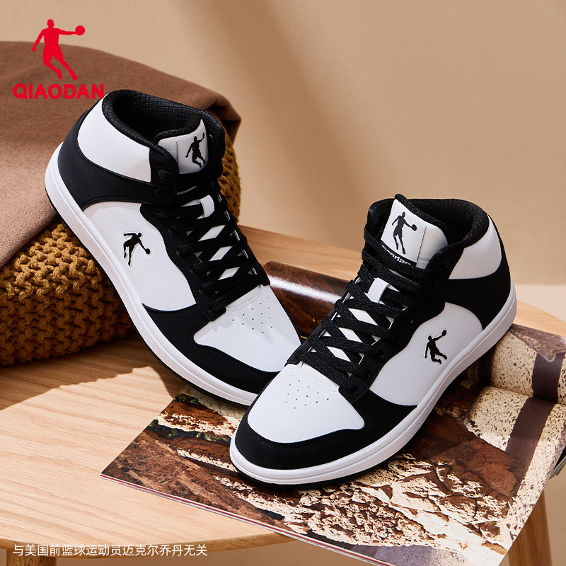 乔丹板鞋冬季加绒保暖新款高帮皮面黑白熊猫休闲鸳鸯鞋女子运动鞋