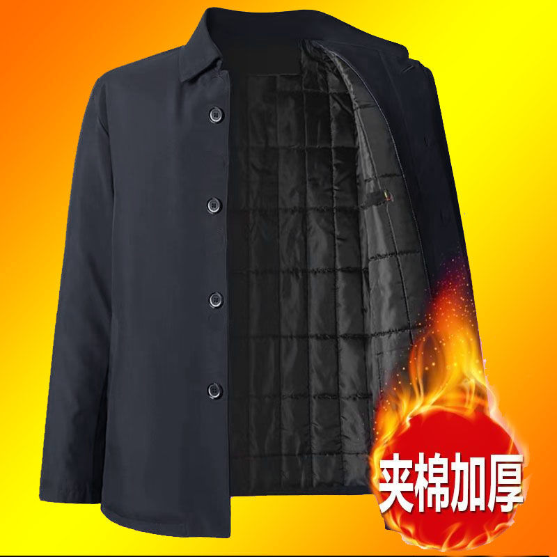 甄选时尚新款冬季男士加厚棉衣男翻领爸爸中老年男装加厚保暖休闲
