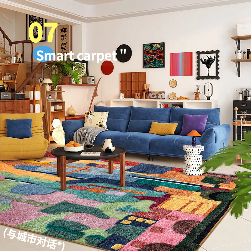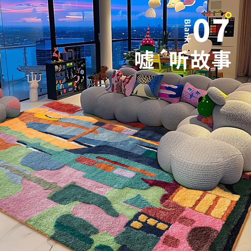 毯仓创意彩色大厦客厅地毯沙发茶几毯设计师样板间家用高级感地垫