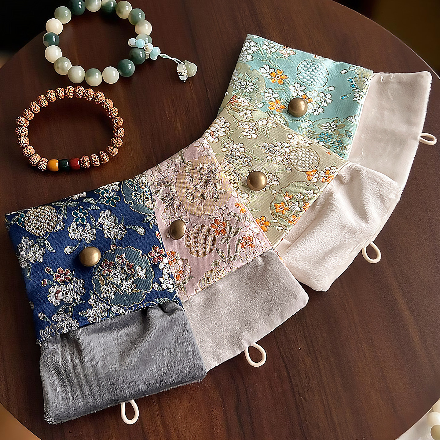 首饰收纳袋高档刺绣纽扣翻口绒布袋织锦手镯手串珠宝首饰收纳袋子