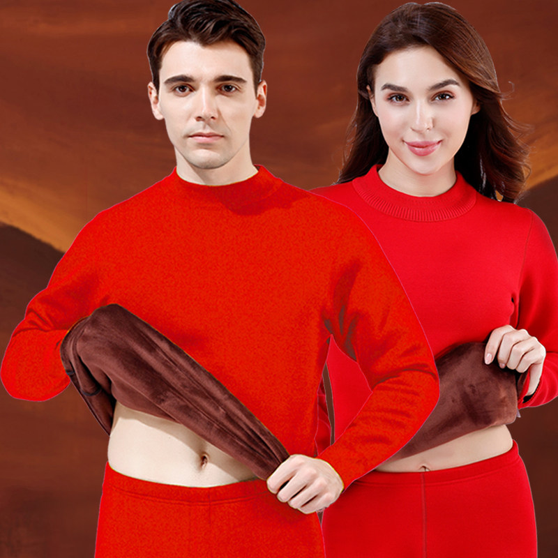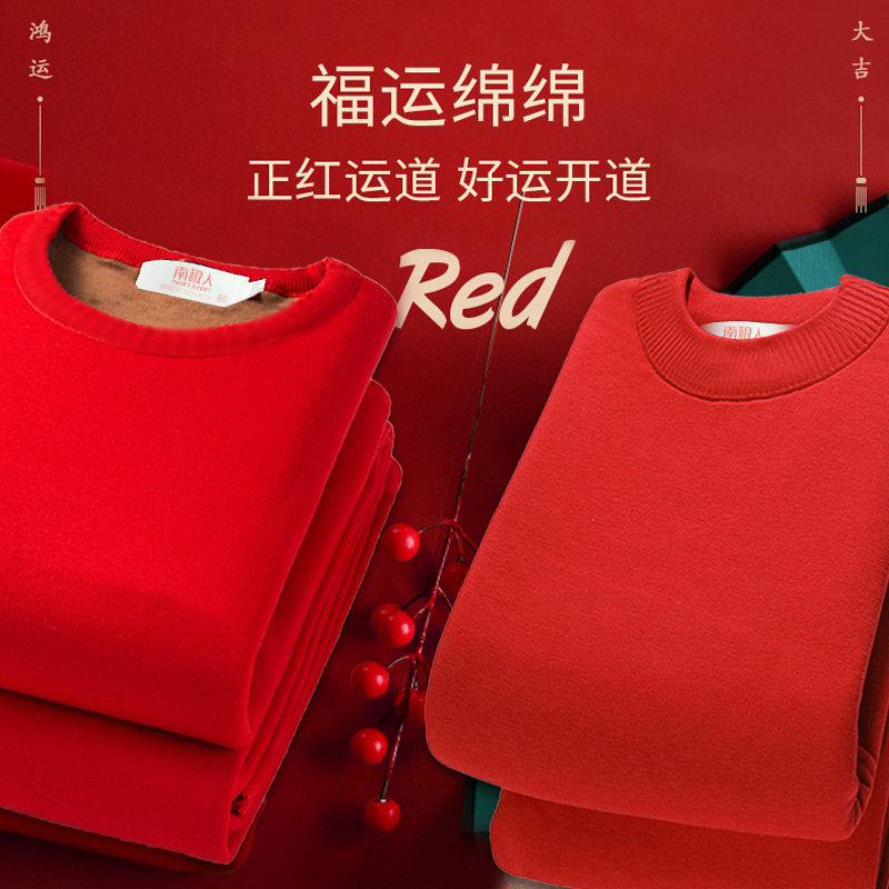南极人男士保暖超厚内衣本命年加绒加厚青年大红色结婚防寒套装女