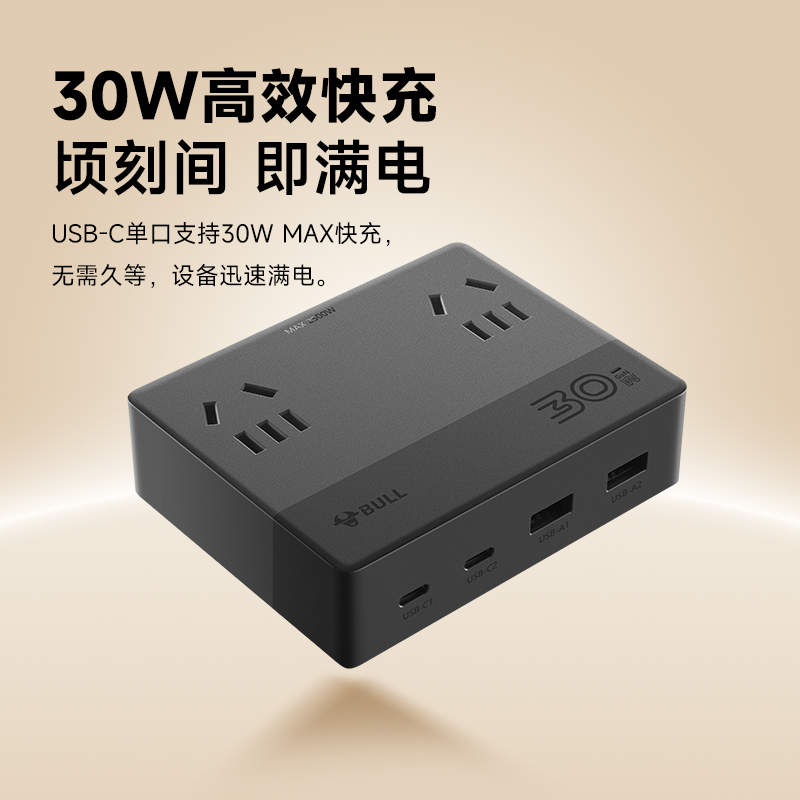 公牛氮化镓多孔扁平插座安全快充