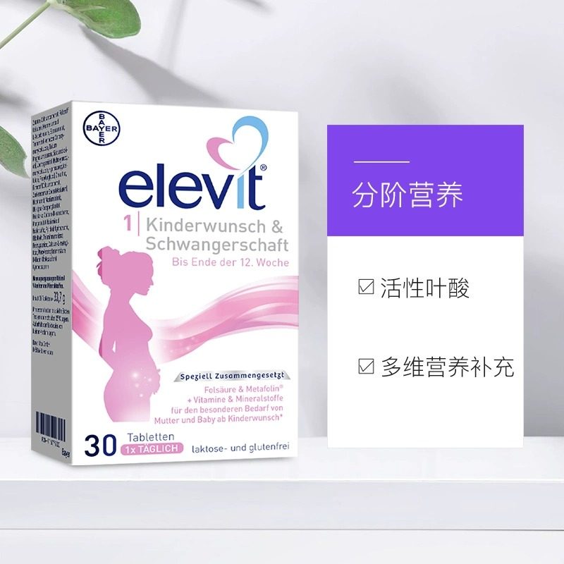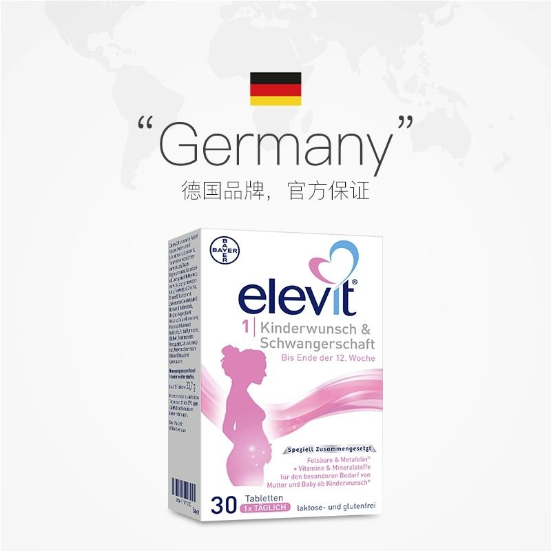 拜耳德版Elevit爱乐维1段孕前期活性叶酸维生素30粒*2