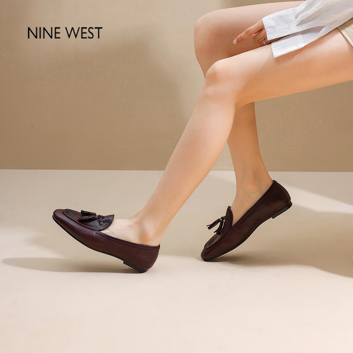 奥莱专供Nine West/玖熙蝴蝶结平底乐福鞋豆豆鞋懒人一脚蹬单鞋女