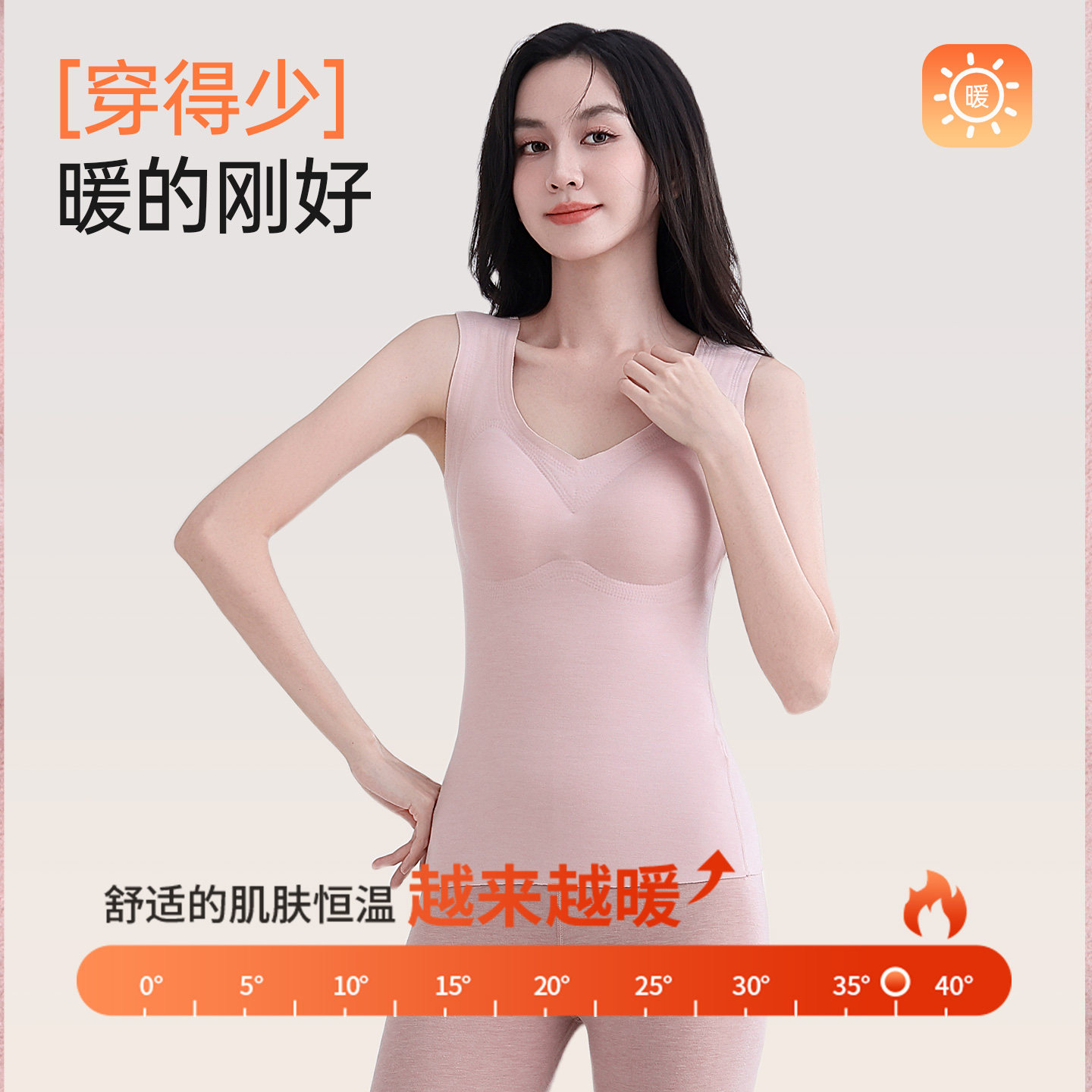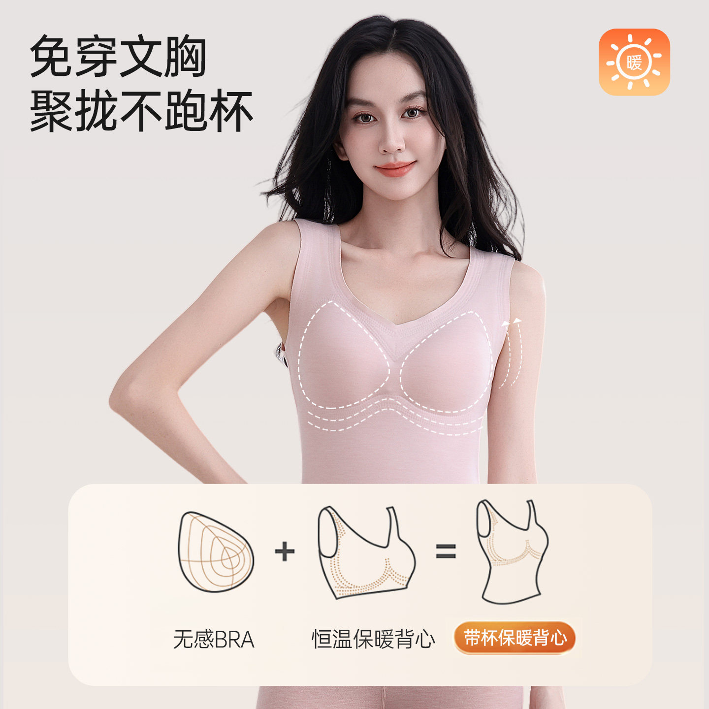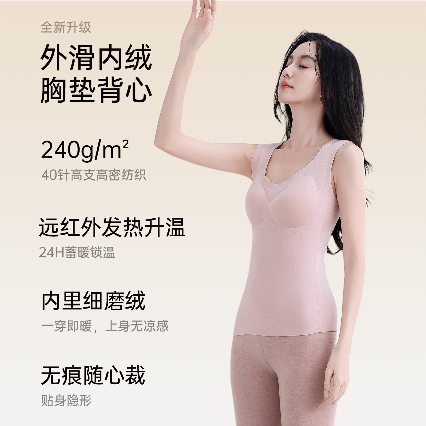 新一系轻暖绒保暖背心带胸垫发热远红外无痕秋冬季新款女士背心