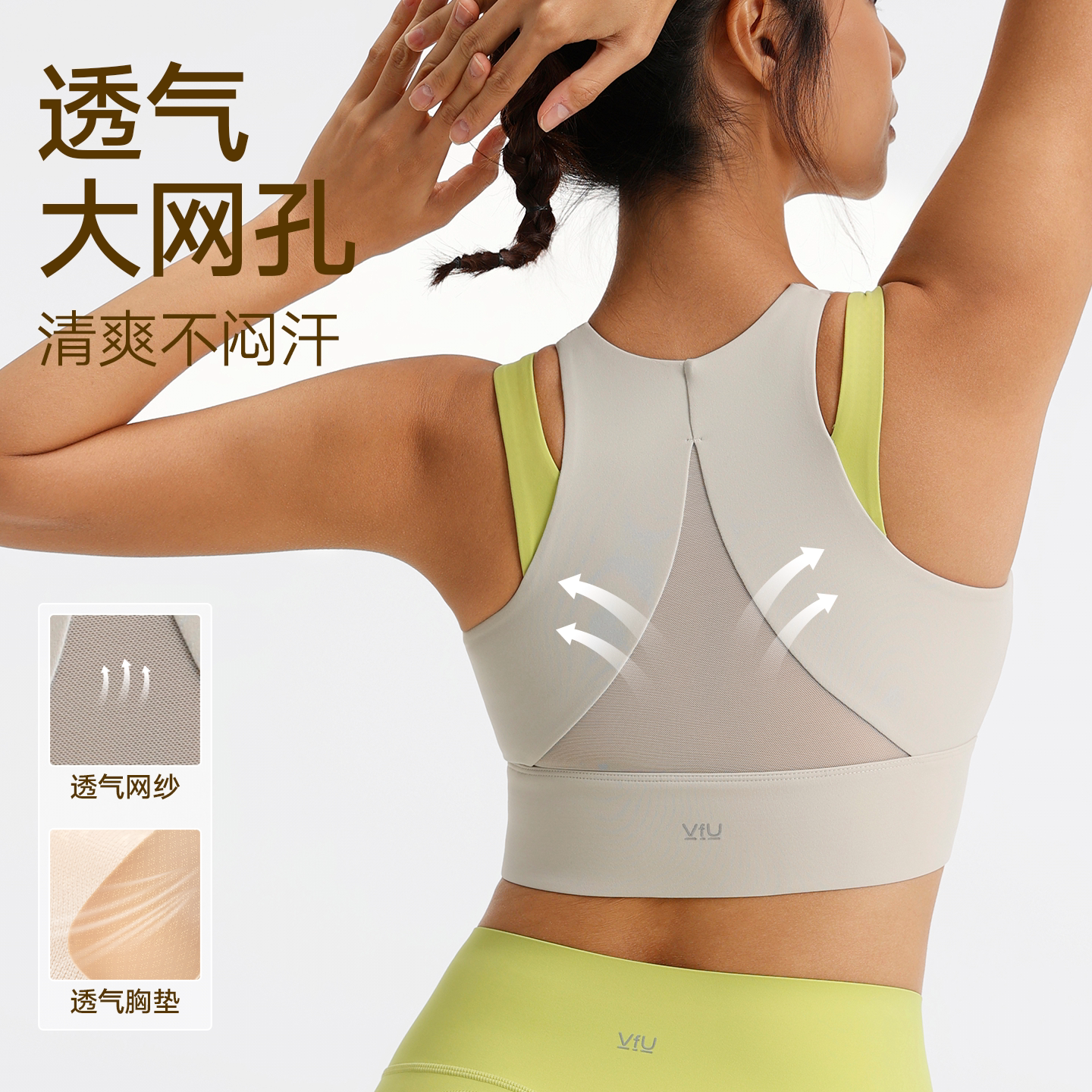 【轻跑套装】VfU前拉链运动背心速干防震收副乳文胸跑步健身内衣