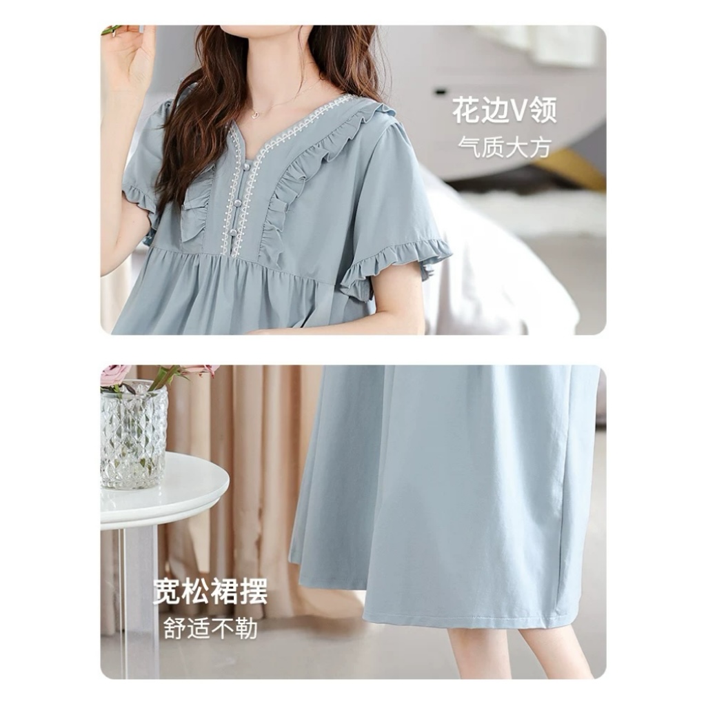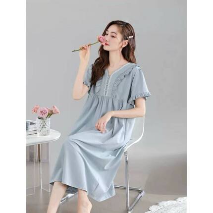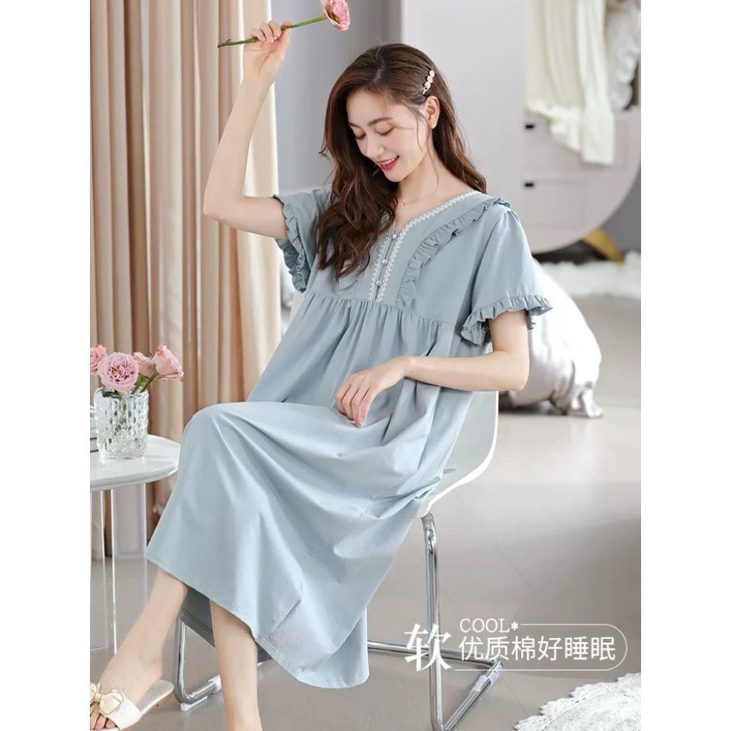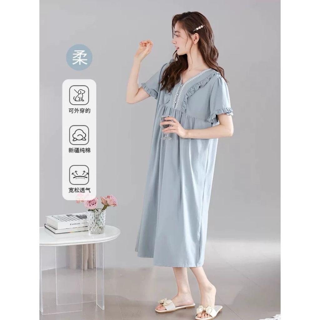 短袖睡裙女士薄款简约高级感夏季纯棉甜美宽松中长款家居裙可外穿