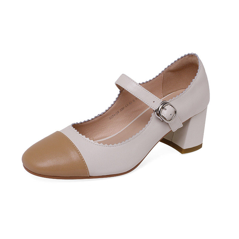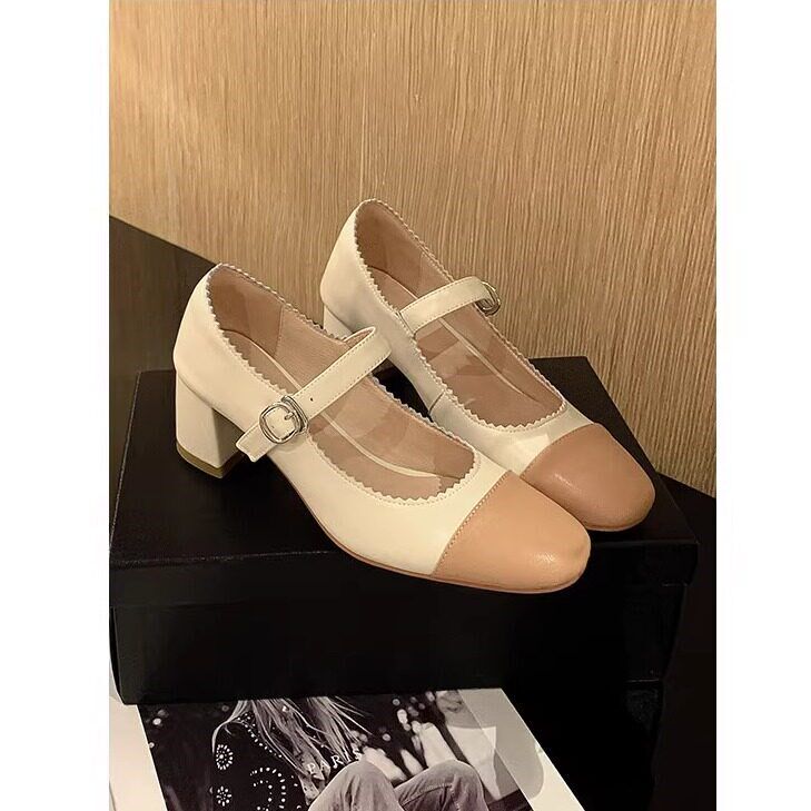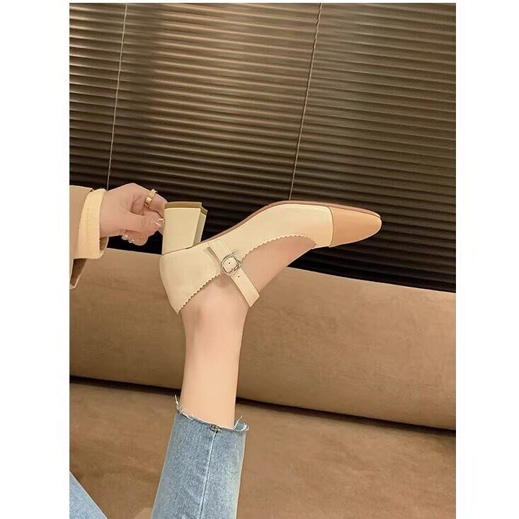 真皮法式复古玛丽珍小皮鞋晚风温柔配裙子方头粗跟通勤中跟单鞋女
