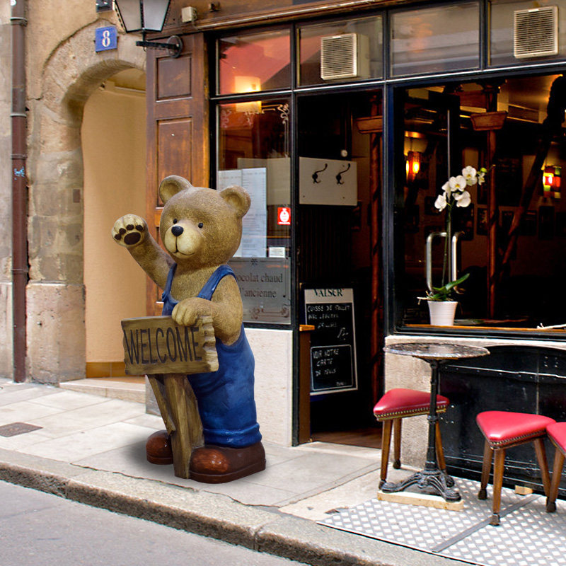 园林景观雕塑小品花园庭院落地卡通摆件玻璃钢小熊门店欢迎装饰品