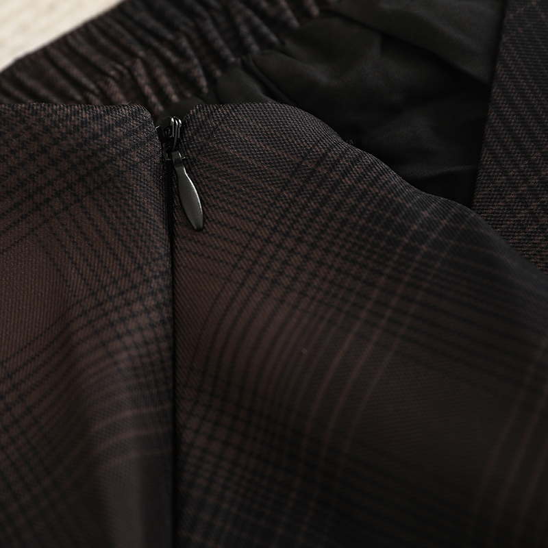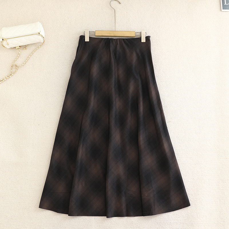檬系!高腰格子半身裙女2025秋冬复古文艺咖啡格纹中长款A字伞裙