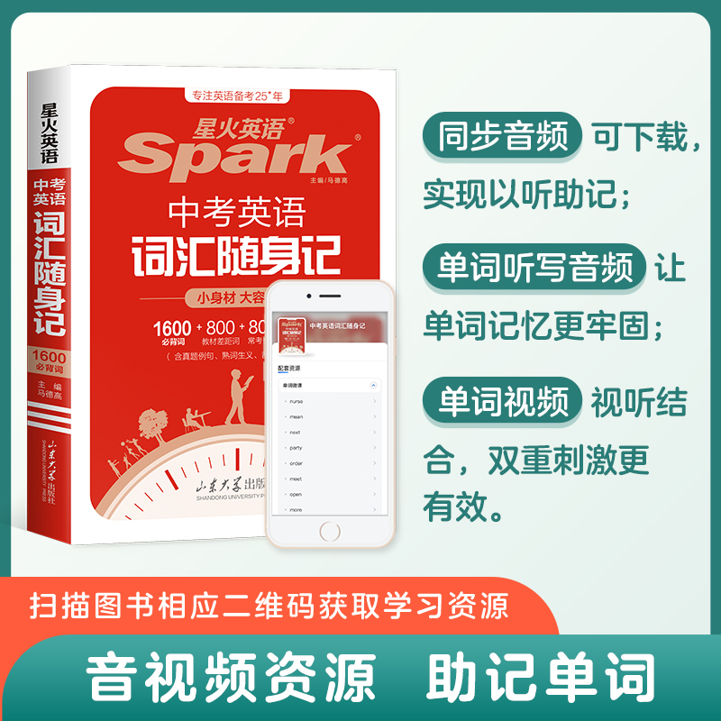 星火英语中考英语词汇初中英语词汇口袋书单词随身记背书初中词汇中考必背英语单词本1600大纲全高频核心词汇人教版小本必背手册