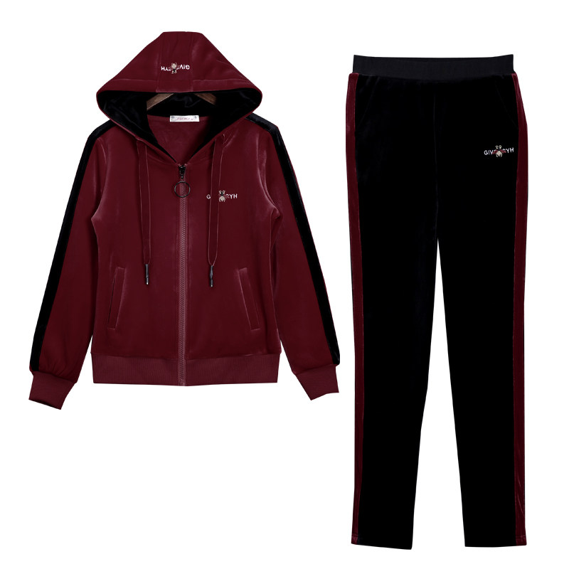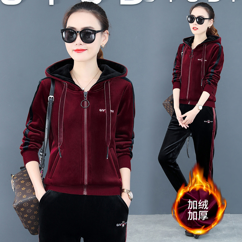 双面金丝绒运动套装女加绒加厚时尚洋气秋冬休闲服连帽卫衣两件套