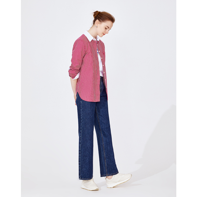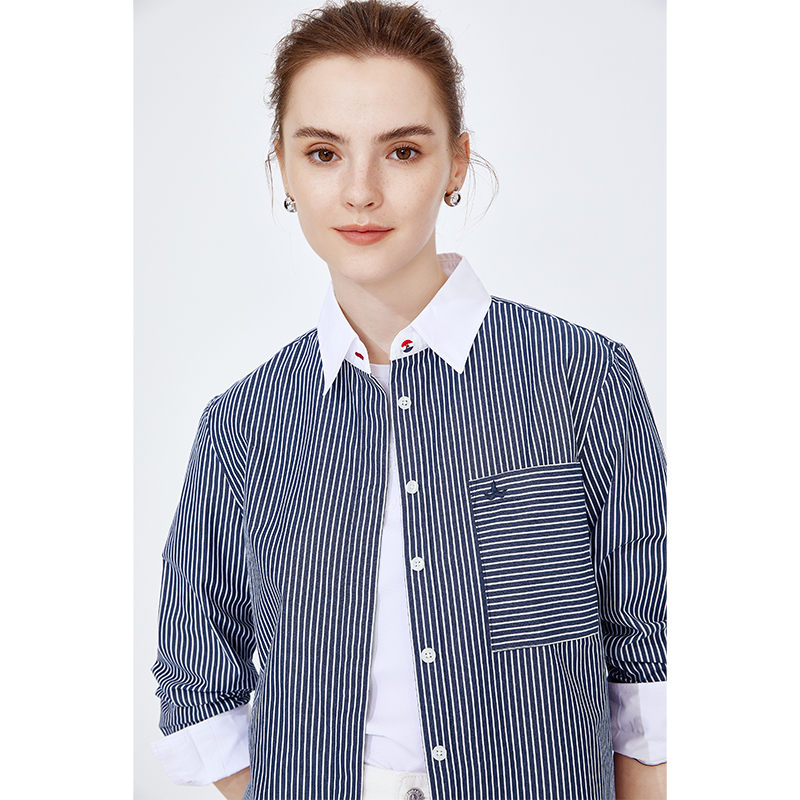 [纯棉]Navigare意大利小帆船秋季蓝色长袖衬衫女休闲条纹衬衣外套