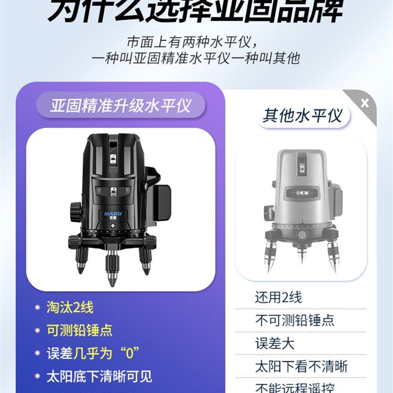 亚固高精度强光细线水平仪自动打线调平红外线蓝光绿光3线5线激光