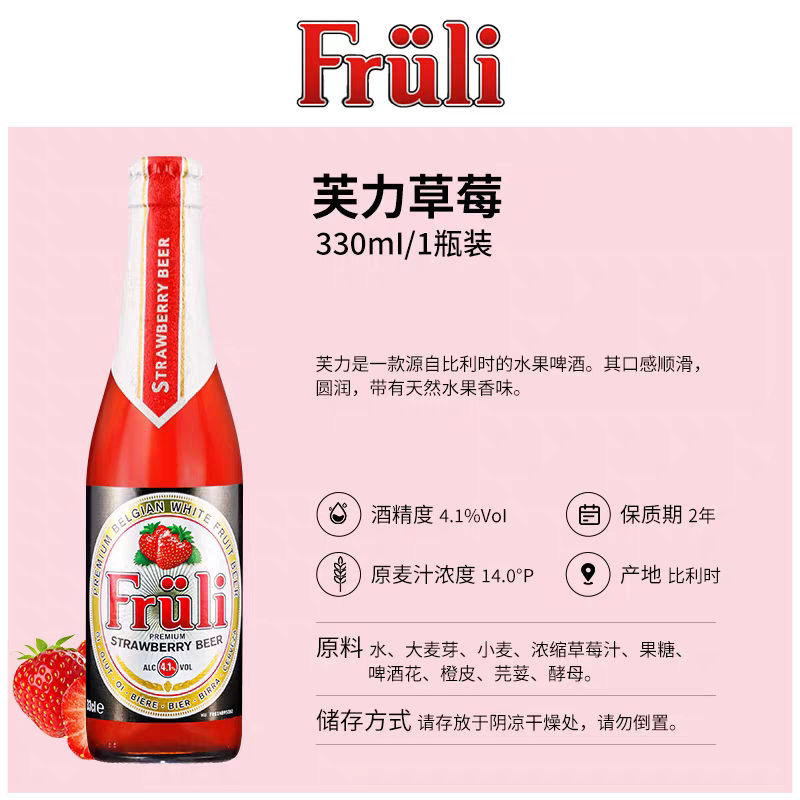 比利时进口芙力草莓/荔枝/西柚精酿啤酒水果女士果酒330ml*瓶装