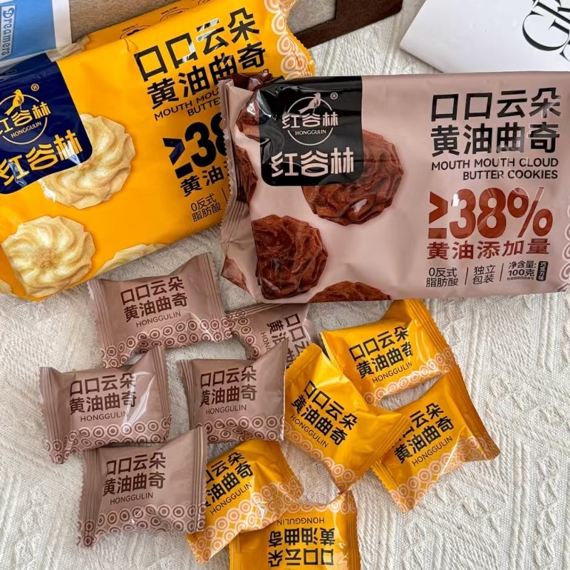 红谷林家新品口口云朵黄油曲奇100g香甜酥脆独立包装烘焙饼干零食
