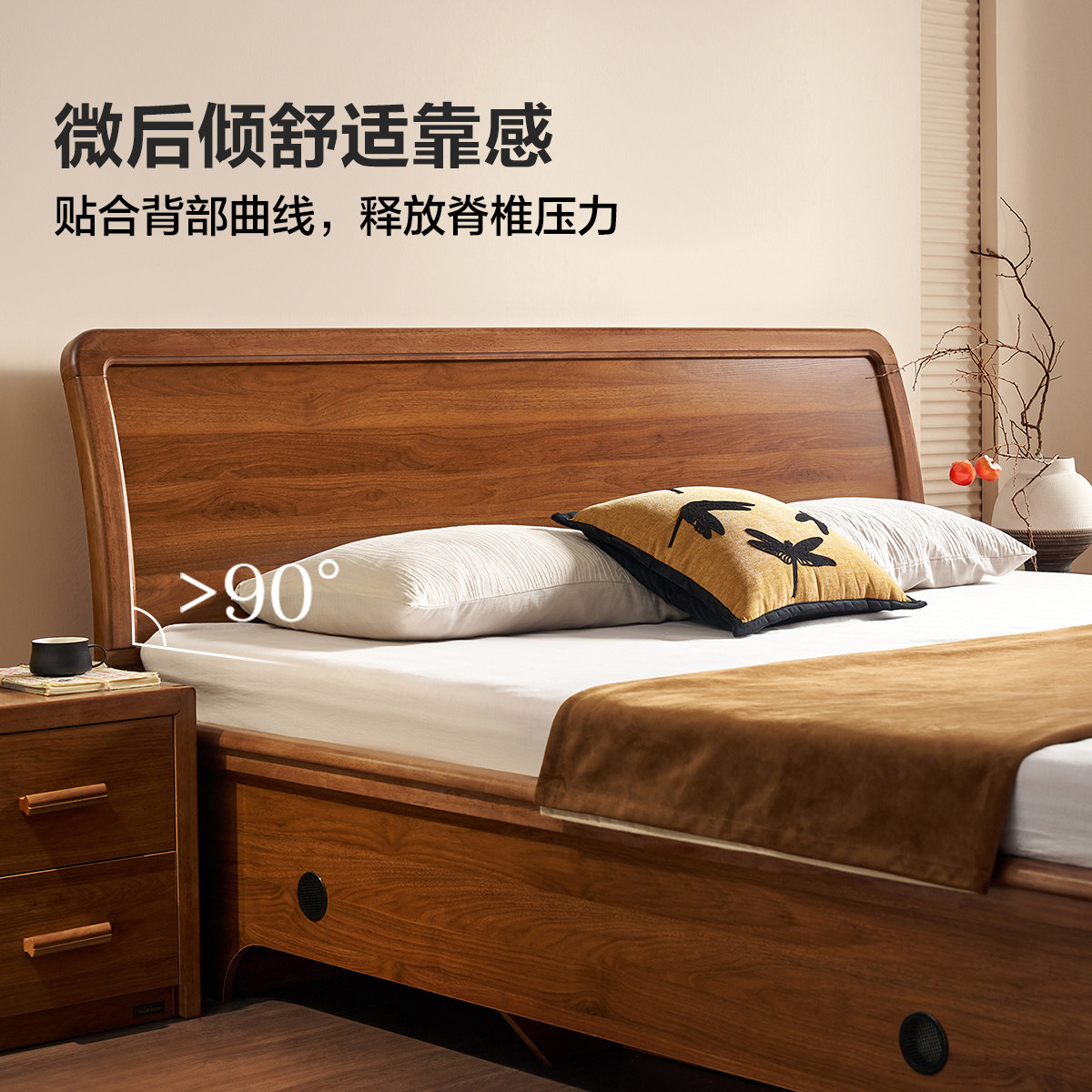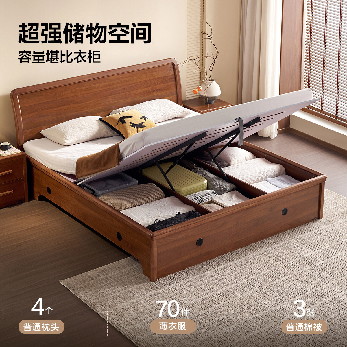 全友家居新中式实木框落地床主卧室1米8双人大床1米5储物板式床