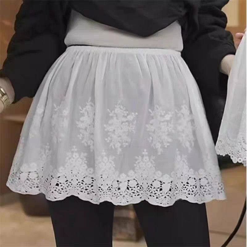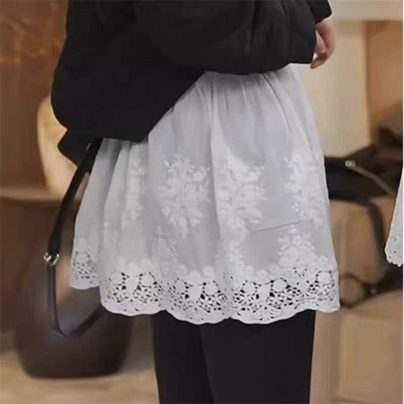 YOUNI秋冬新款大码叠穿百搭遮屁股短款打底女白色蕾丝屁帘半身裙