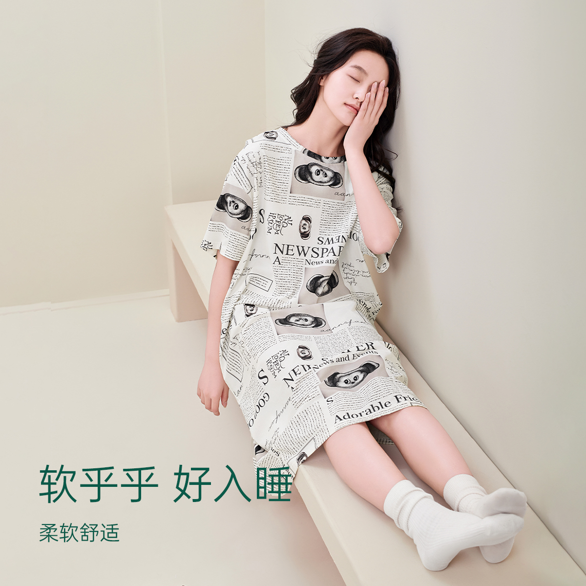 安之伴【巨凉感】可外穿夏季睡裙女纯棉短袖薄款时尚睡衣宽松大码