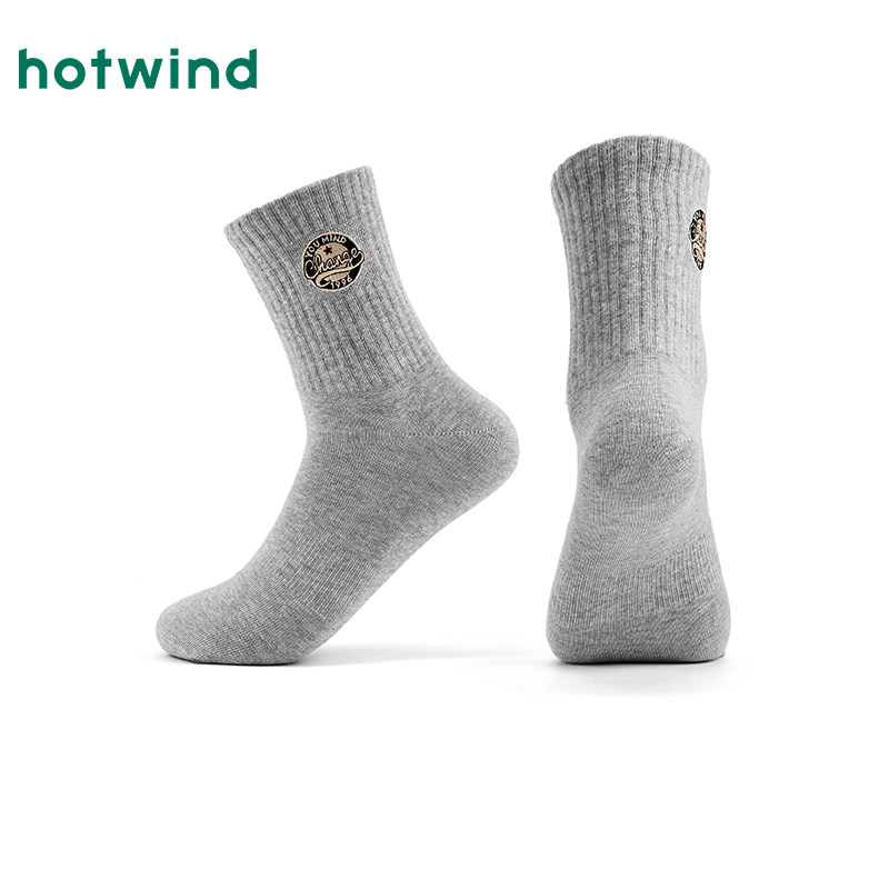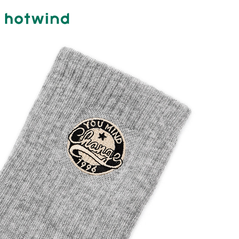 热风男士中帮袜2025年秋季新款简约刺绣弹力百搭户外运动中帮袜