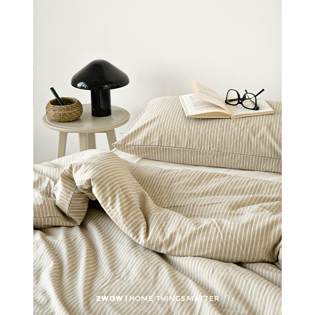 造卧zwow四季款侘寂风北欧INS风卡其条纹色织水洗100全棉四件套