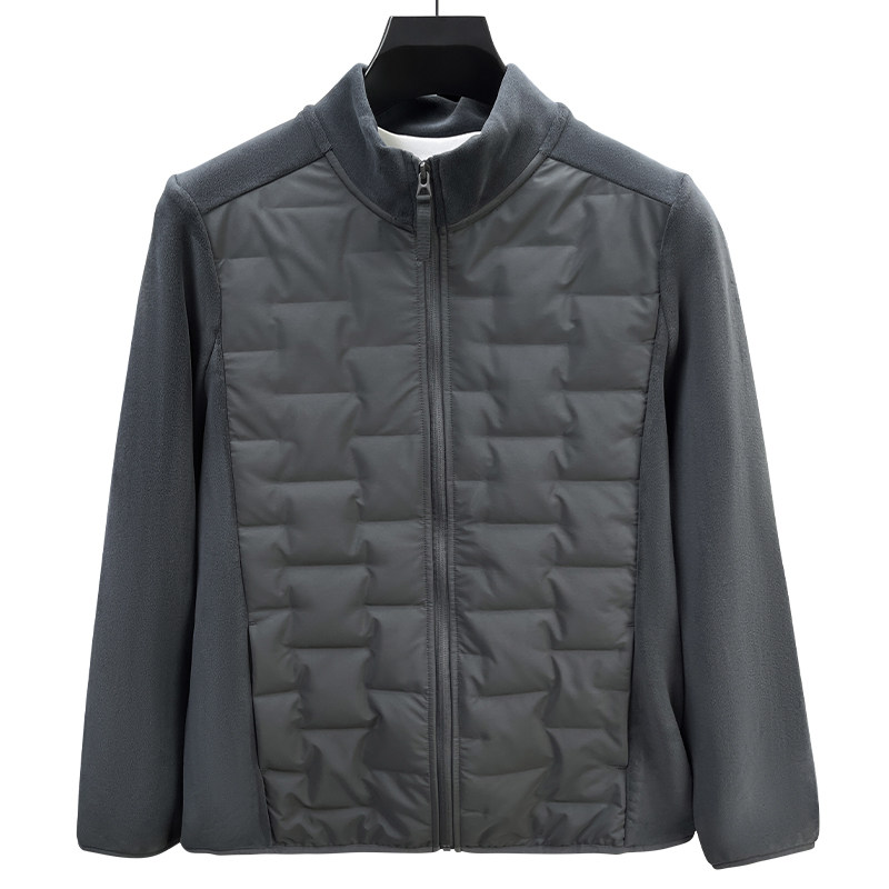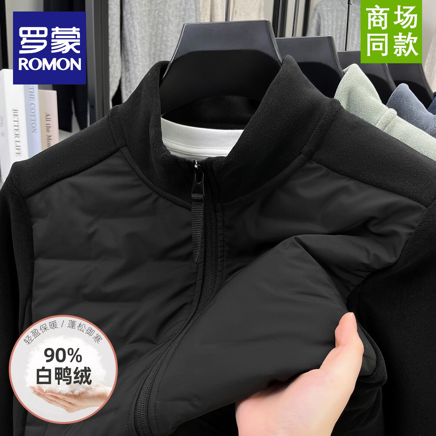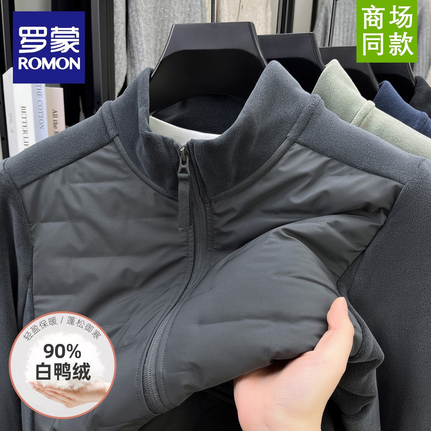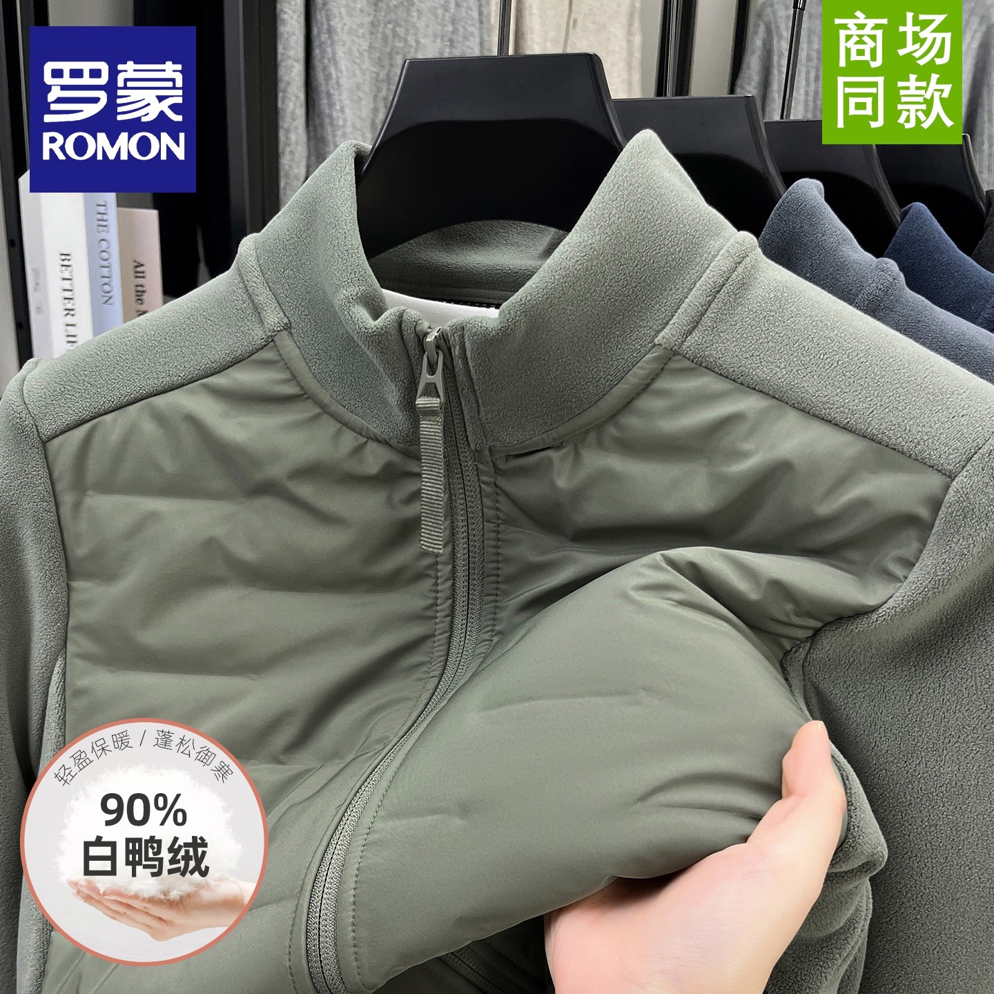 罗蒙奥粒绒拼接轻薄款休闲立领羽绒服男秋冬季新款抓绒摇粒绒外套