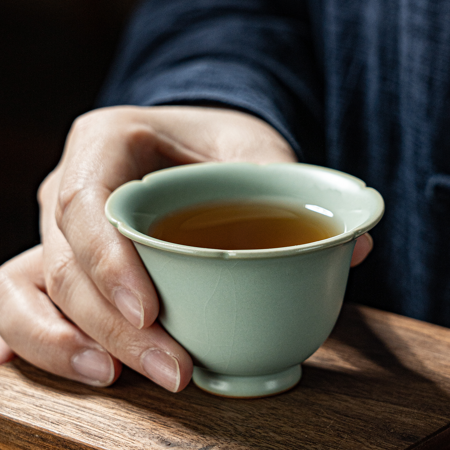 汝窑功夫茶主人杯茶碗手工复古景德镇陶瓷茶盏单杯开片可养礼盒装
