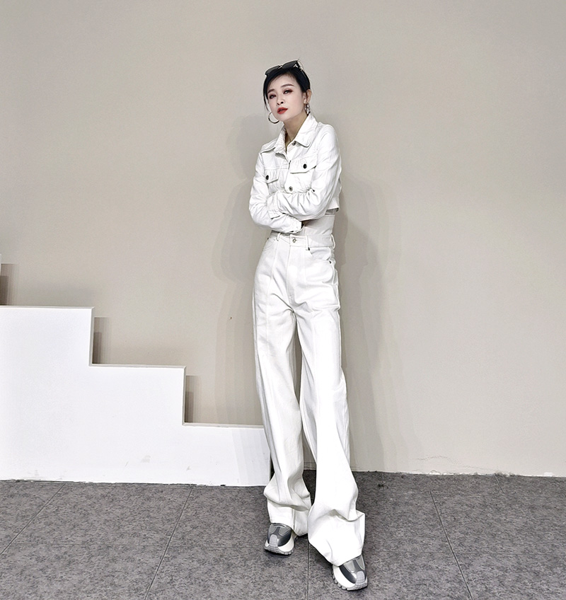 2025小众设计时尚新款白色牛仔短外套长裤女士休闲气质两件套