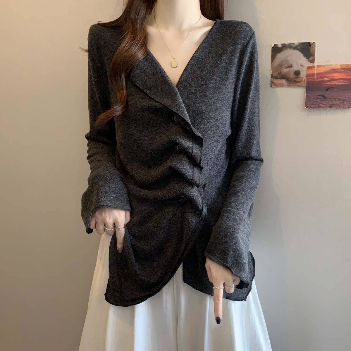 秋冬大码女装感洋气针织衬衫女打底衫胖mm褶皱显瘦遮肚子上1002n