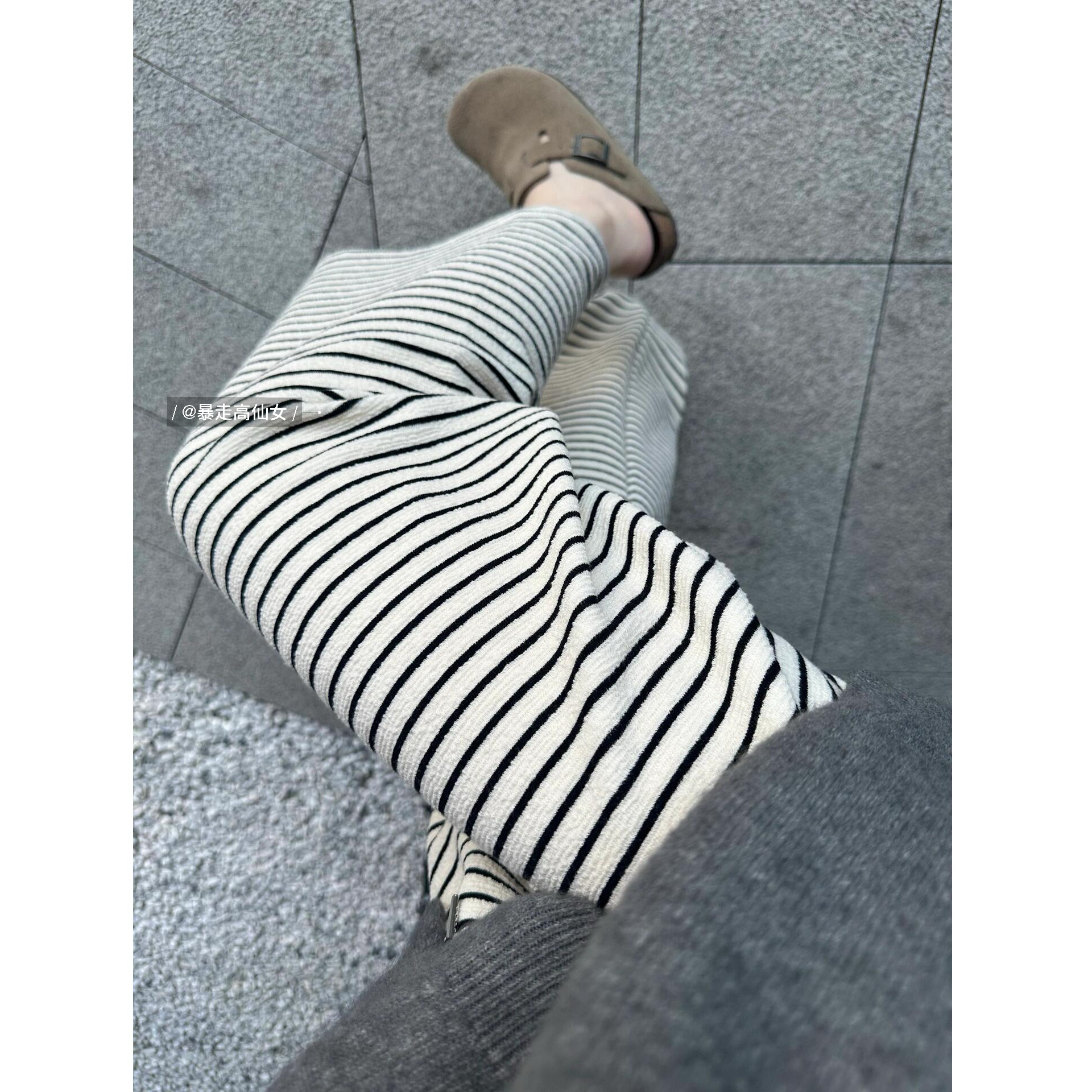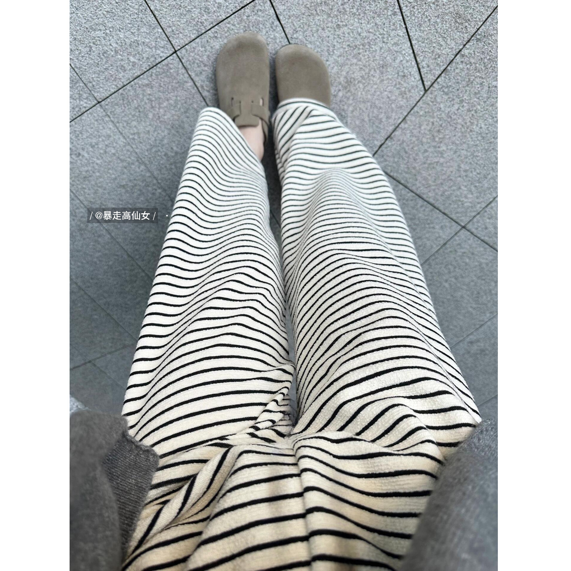 毛巾神裤黑白条纹阔腿裤加长版慵懒高腰175高个子软糯休闲直筒裤