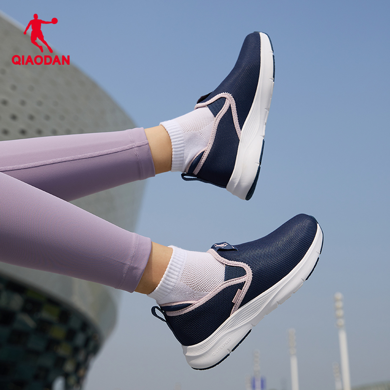 乔丹加绒棉鞋运动鞋女鞋2024秋冬新款一脚蹬健步鞋黑色保暖跑步鞋