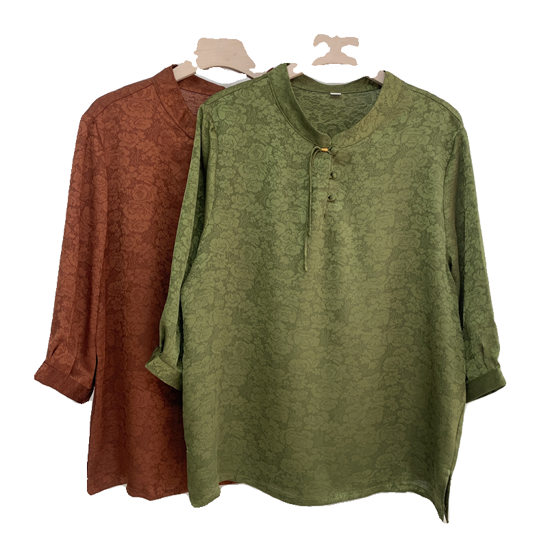 妈妈夏装真丝香云纱上衣高贵中袖新款中老年桑蚕丝奶奶小衫女洋气