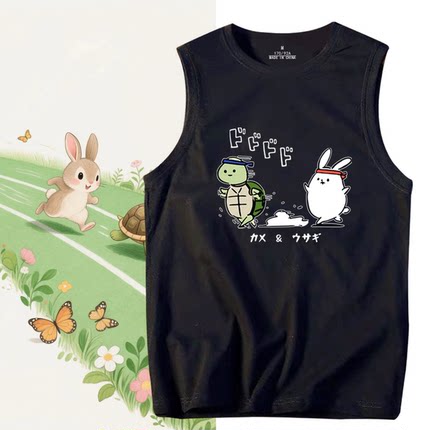 日系设计感萌趣无袖兔子是无敌的t恤龟兔赛跑可定制坎肩男女背心