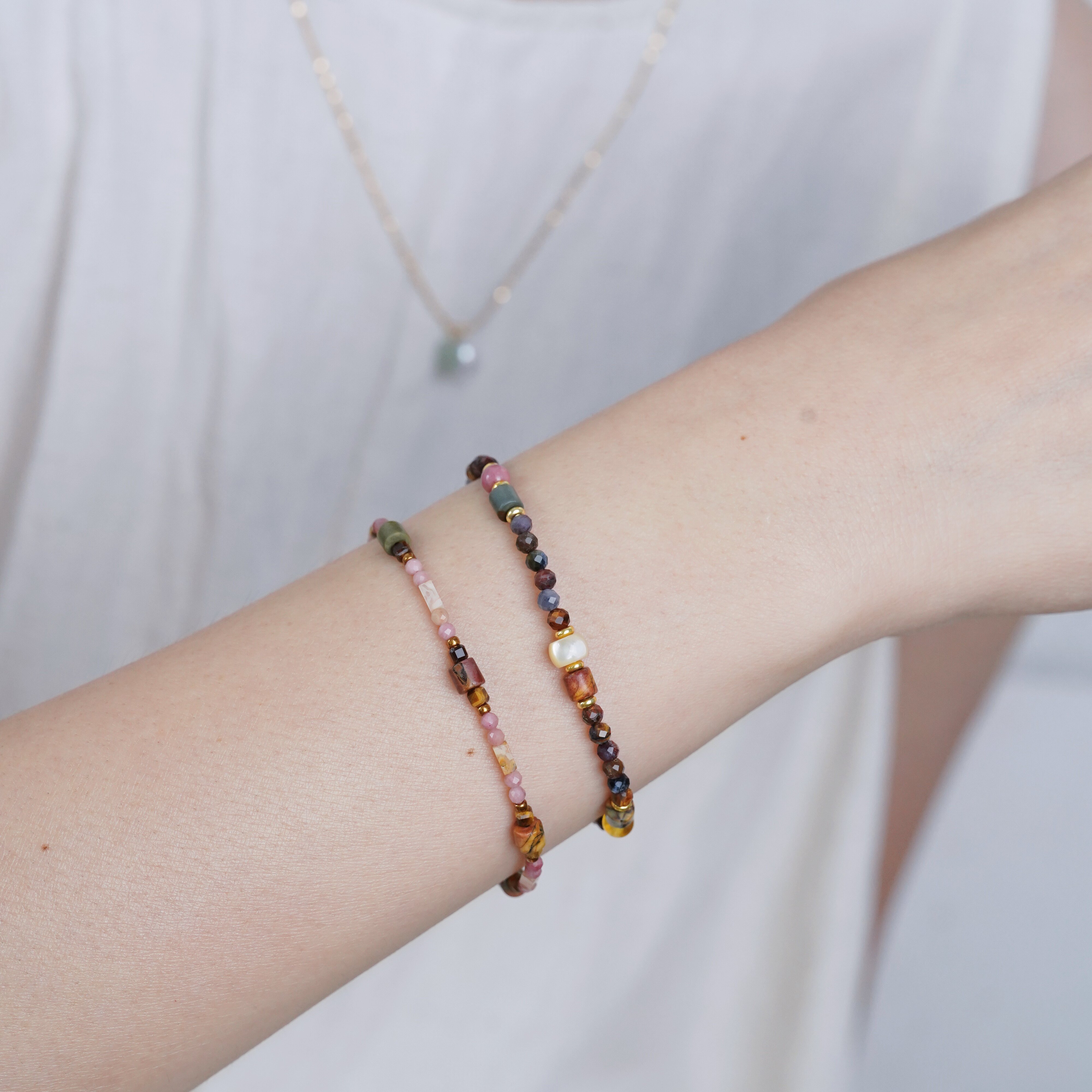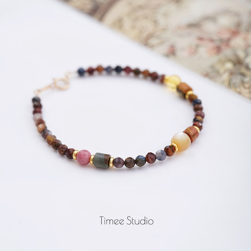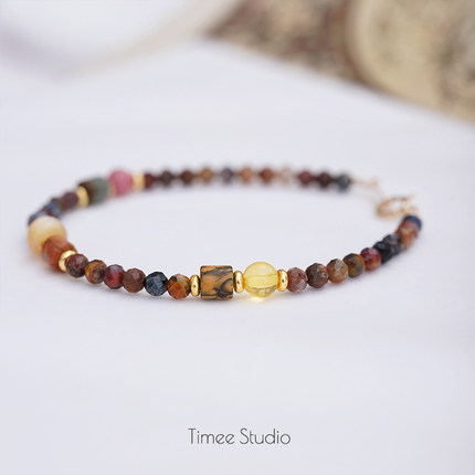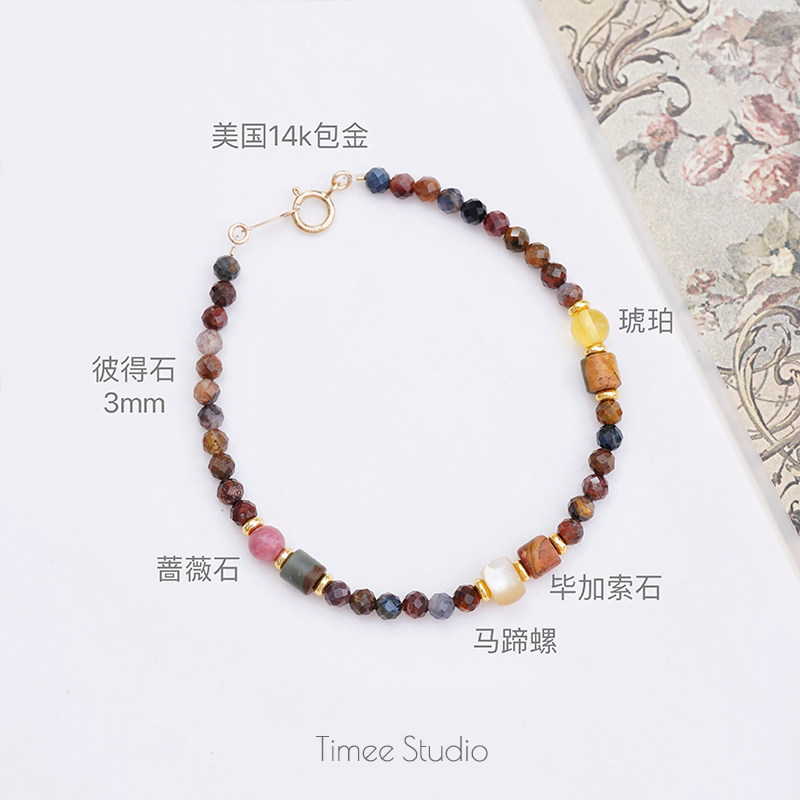 Timee恬觅 暮霭 天然彼得石蔷薇辉毕加索石琥珀14K美包手链礼物