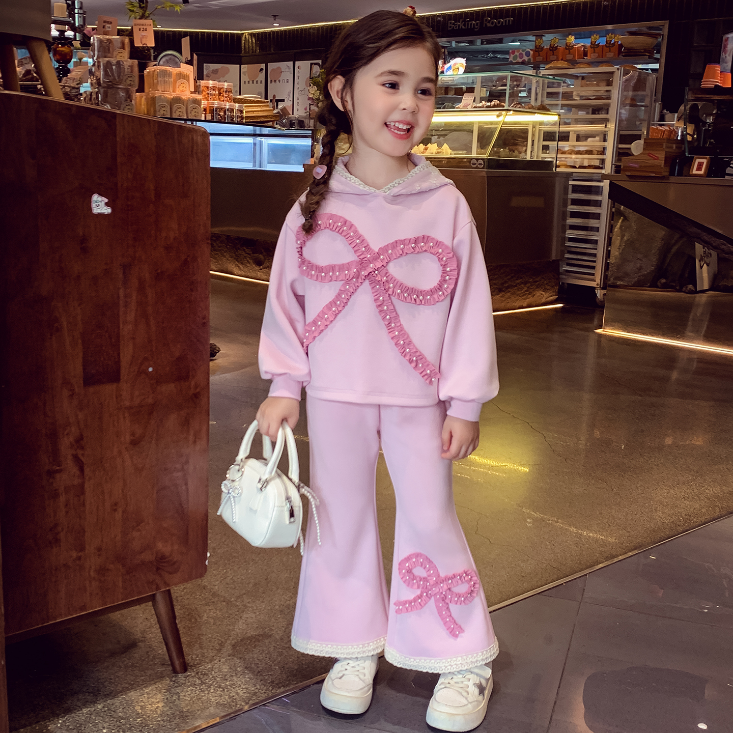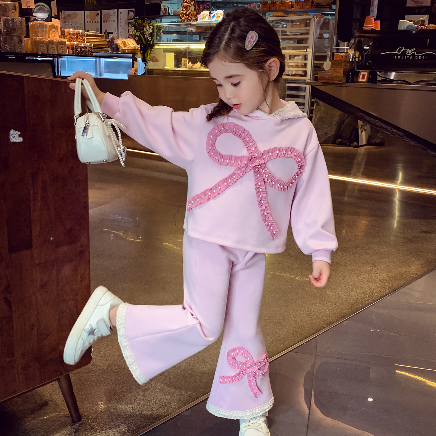 女童套装秋装2025新款儿童韩版连帽卫衣裤子两件套洋气女孩运动服