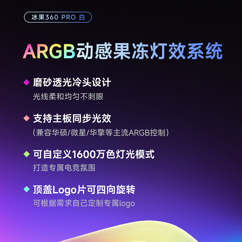 九州风神冰果240/360 PRO ARGB光环冷头 多平台cpu水冷散热器