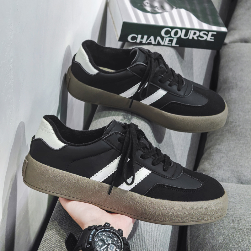 德训男鞋秋冬季2025新款加绒保暖休闲阿甘板鞋学生皮面运动休闲鞋
